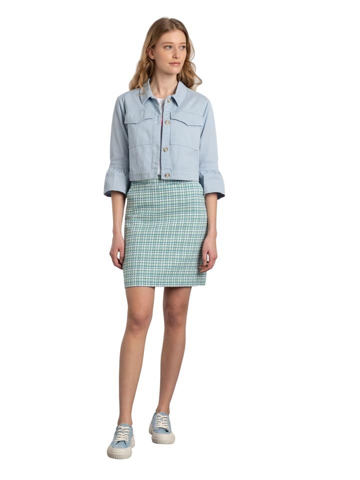 С короткой цветной джинсовой курткой от MORE \ u0026 MORE у вас есть идеальный стильный партнер для юбок, брюк и летних платьев.