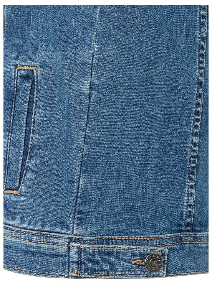 Джинсовая куртка MORE \ u0026 MORE, скроенная по фигуре, из стираного синего денима - поистине универсальная вещь. Ее можно носить как с женственными платьями и юбками, так и с классическими или спортивными брюками, создавая непринужденный и повседневный образ.