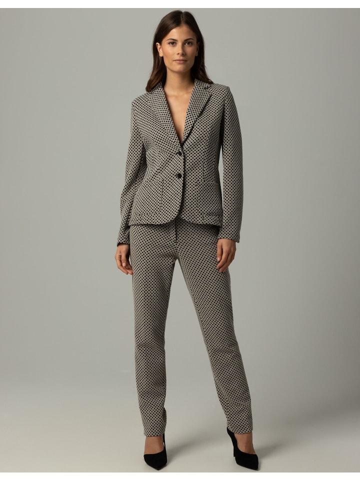 Этот элегантный трикотажный блейзер от MORE \ u0026 MORE с двухцветным мини-рисунком и блестящей золотистой нитью прекрасно сочетается с подходящими брюками для создания повседневного вечернего образа.