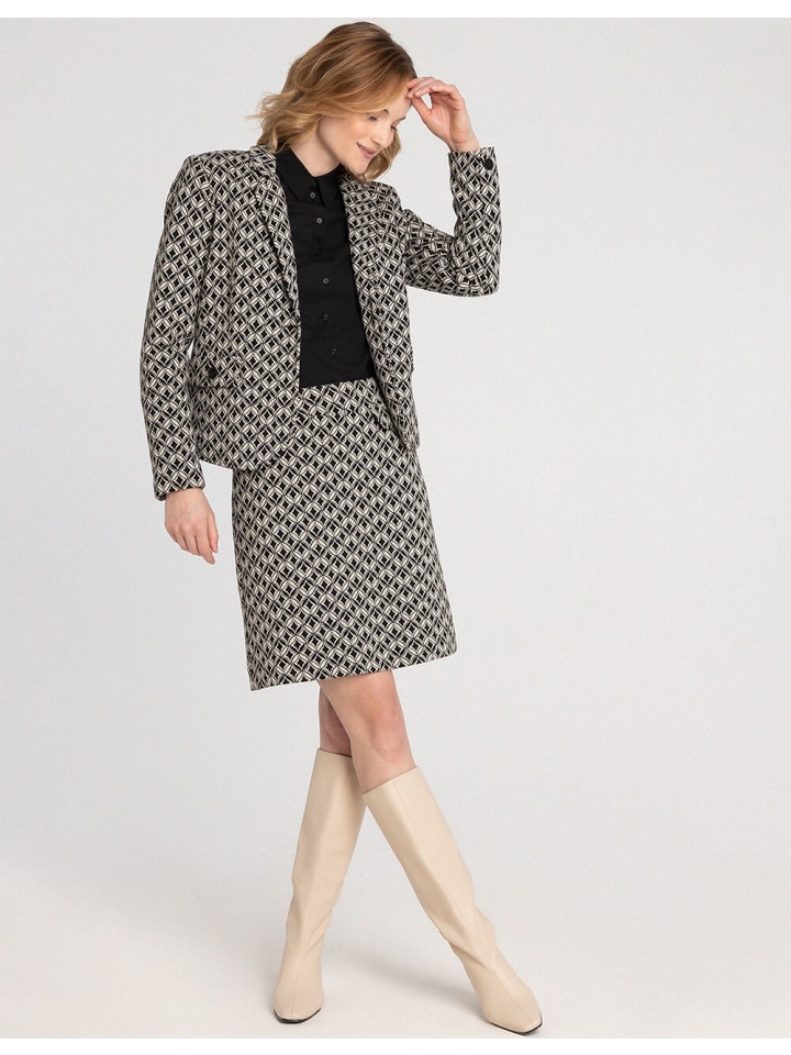С этим узорчатым трикотажным блейзером от MORE \ u0026 MORE вы будете выглядеть безупречно в любой ситуации. Его можно носить с выцветшими джинсами, классическими деловыми брюками или юбкой в тон. Благодаря эластичному трикотажу он невероятно удобен и прост в уходе.