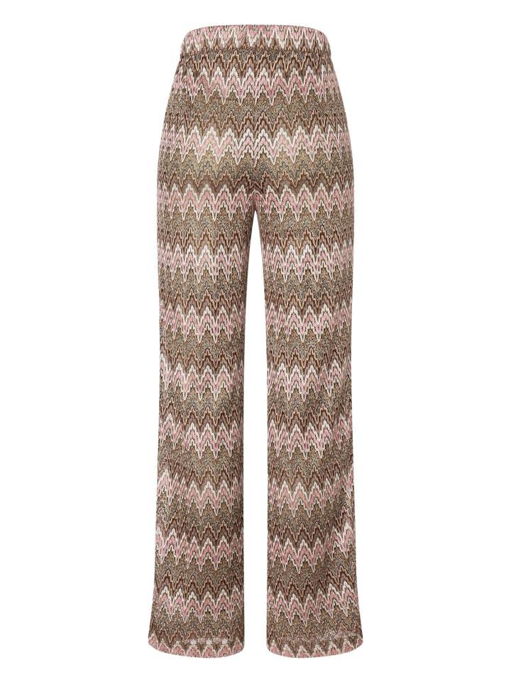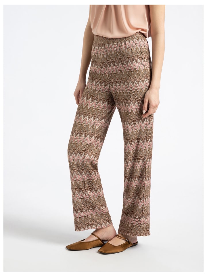 Эти современные ажурные брюки от MORE \ u0026 MORE с зигзагообразным узором в коричнево-розово-бежевых тонах особенно стильно смотрятся с майкой, короткой джинсовой курткой и шлепанцами. Вы также можете надеть эти брюки с рубашкой в тон, чтобы создать стильный комплект из двух предметов.