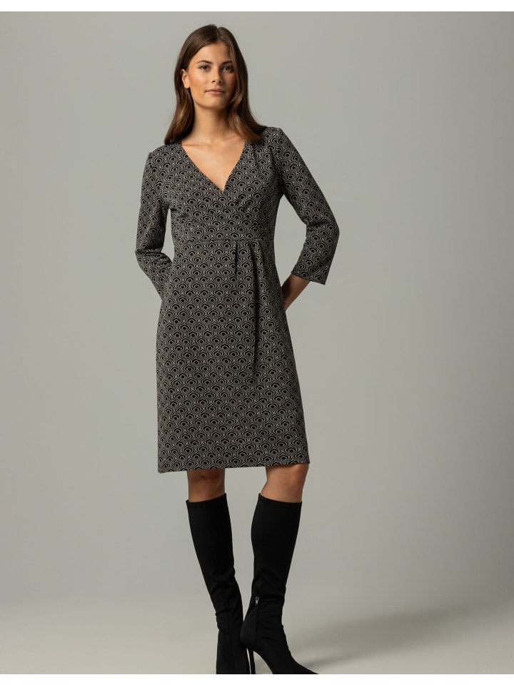 В этом трикотажном платье с мелким рисунком от MORE \ u0026 MORE вы будете готовы к вечеринке в мгновение ока. Просто добавьте элегантные каблуки и шаль из пашмины - и готово.
