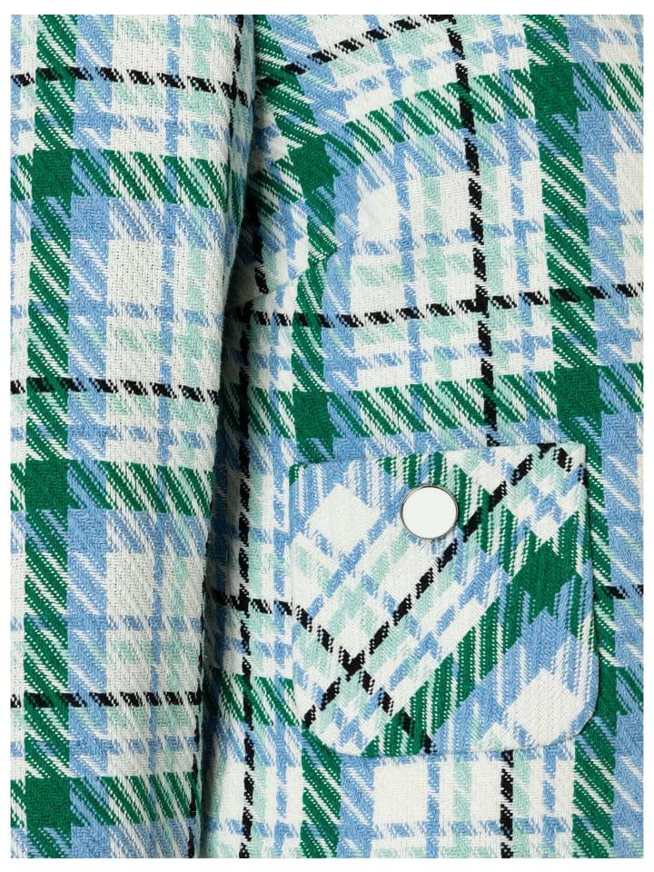 Эта короткая куртка свободного кроя от MORE \ u0026 MORE с ярким клетчатым рисунком в зеленом/голубом/черном/экрю цветах и декоративными пуговицами очень круто смотрится с широкими джинсами, простой футболкой и кроссовками, но ее также можно женственно сочетать с юбкой-карандашом.