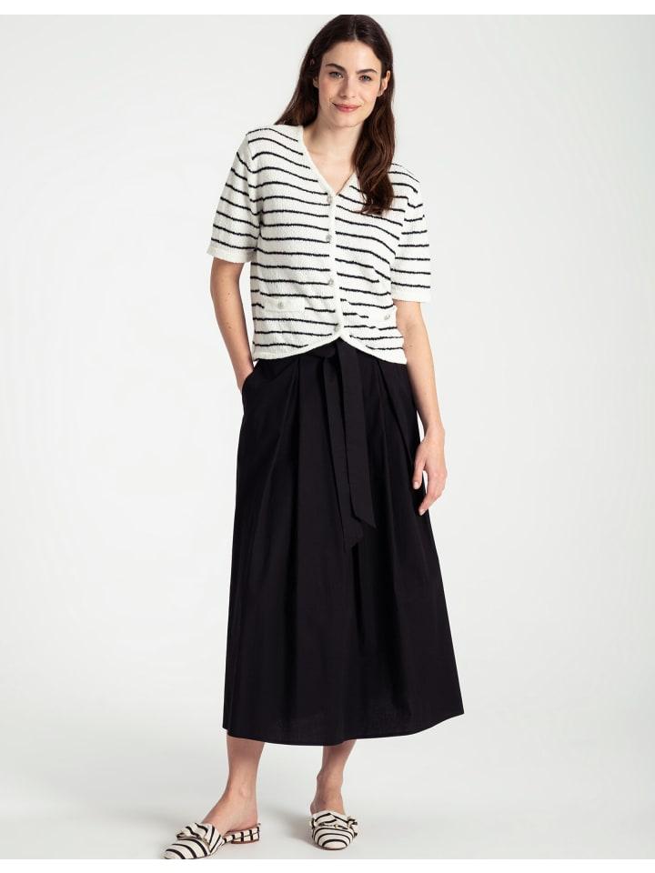 Этот полосатый кардиган с короткими рукавами от MORE \ u0026 MORE с декоративными пуговицами серебристого цвета подходит как к юбкам, так и к брюкам и даже очень мило смотрится с простыми платьями.