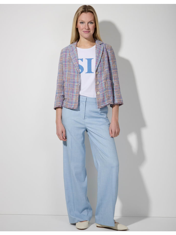 Этот небольшой блейзер от MORE \ u0026 MORE из летней твидовой фактуры можно носить как с джинсовой юбкой и кроссовками, так и очень женственно со струящейся юбкой и каблуками.