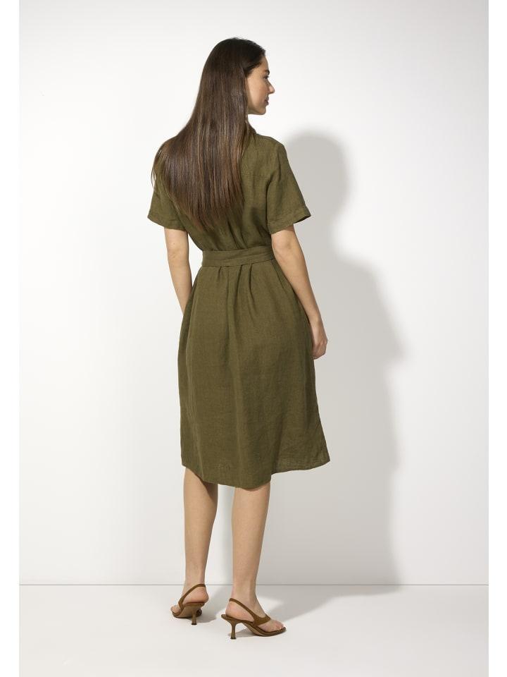 Это льняное платье оливкового цвета от MORE \ u0026 MORE в модном стиле сафари станет идеальным спутником в жаркие летние дни.