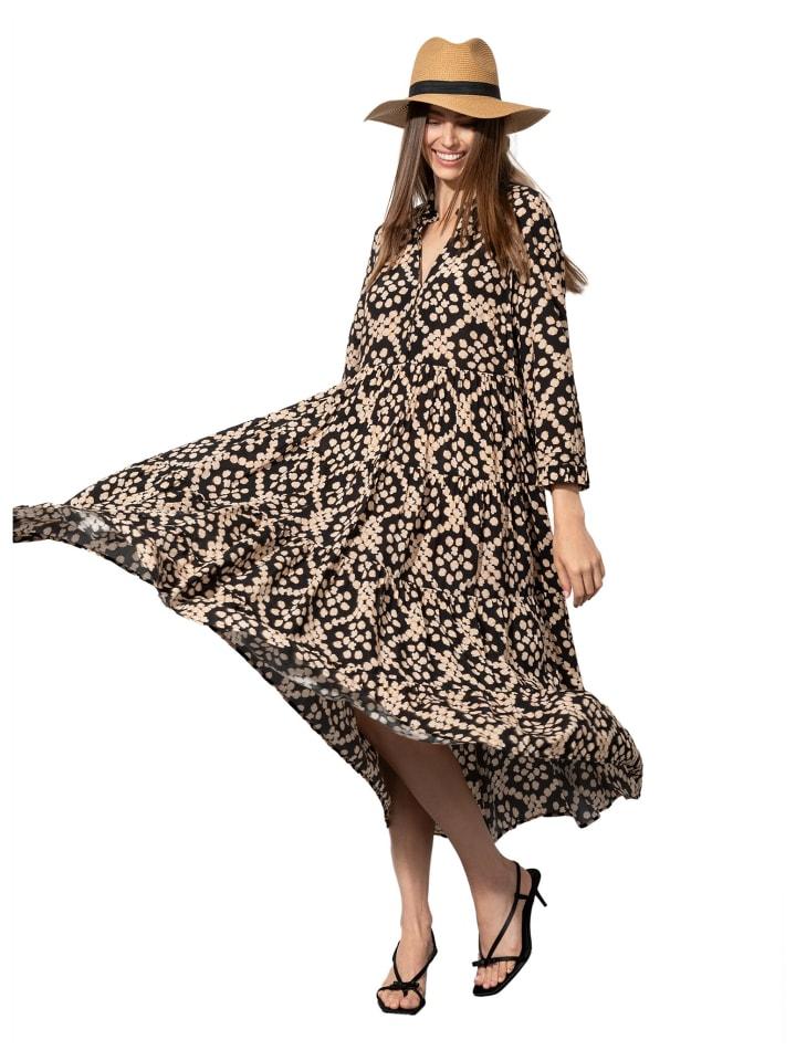 Это свободное, струящееся макси-платье от MORE \ u0026 MORE с современным принтом в горошек и рукавами длиной 3/4 выглядит просто потрясающе и гарантирует высокий уровень комфорта. Носите его с кроссовками, сандалиями или каблуками, в зависимости от случая, для создания простого и модного образа.