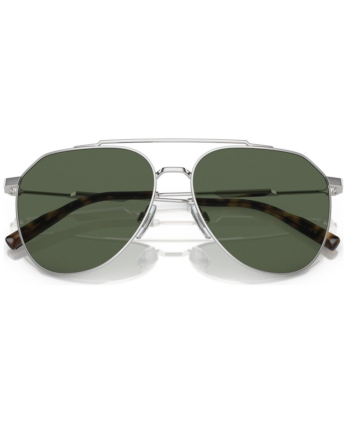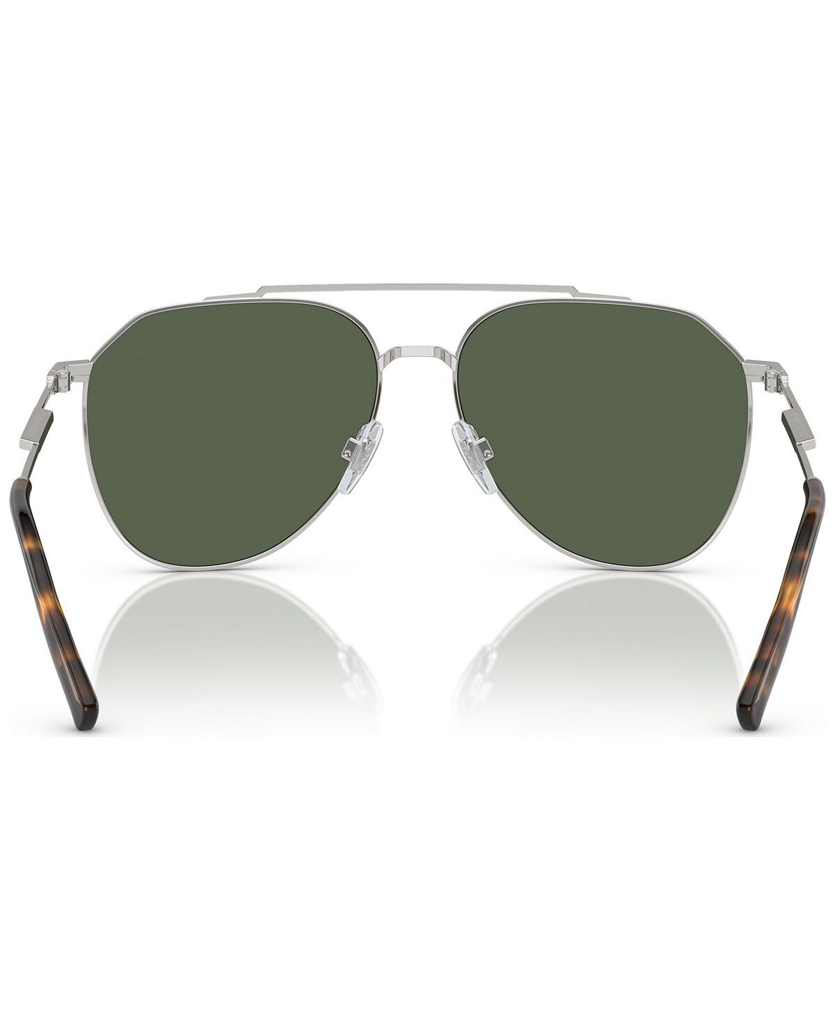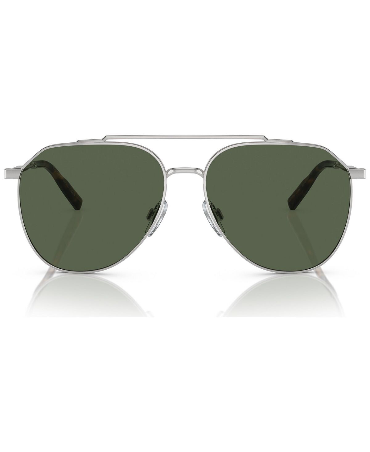 Эта неподвластная времени металлическая пилотная форма дополнена современными деталями, такими как узорчатые зеркальные линзы с логотипом DG Crossed и плоские дужки с диагональным вырезом. Потрясающие сочетания металла и цвета линз, включая линзы полярно-зеленого цвета на серебристом металле.
