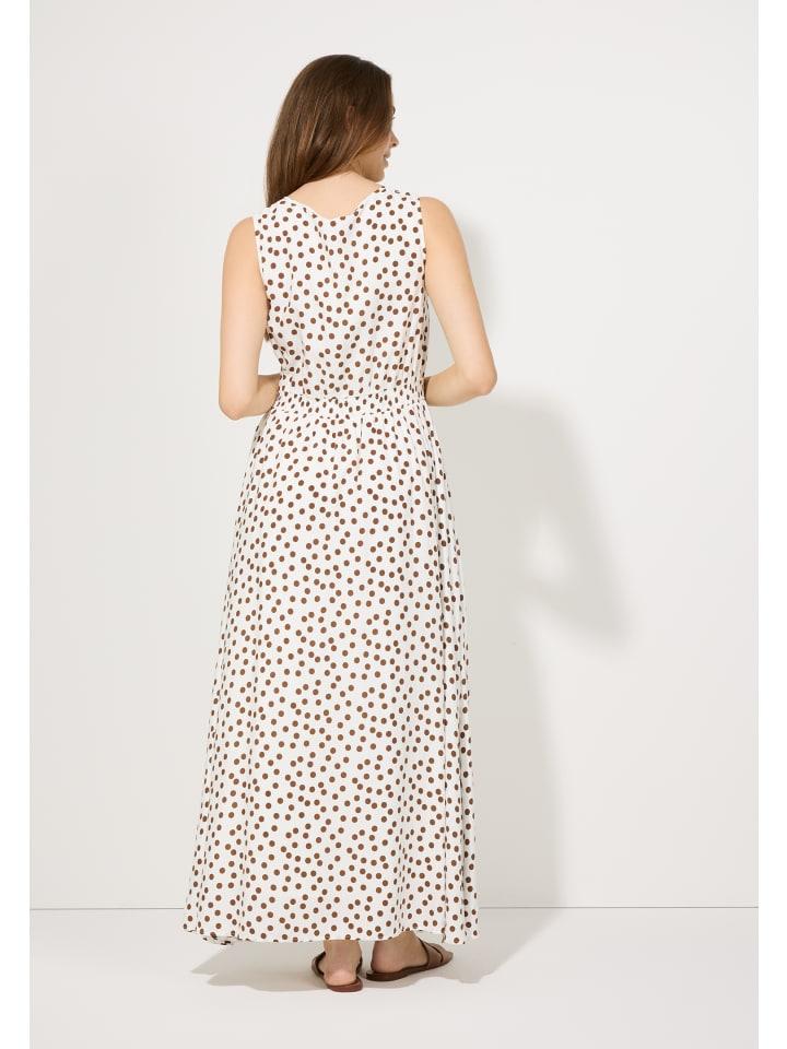 Это прекрасное летнее платье MORE \ u0026 MORE цвета экрю с темно-коричневым горошком идеально подходит для отпуска. Дополните его сандалиями, кроссовками или каблуками для создания непринужденного и модного образа.
