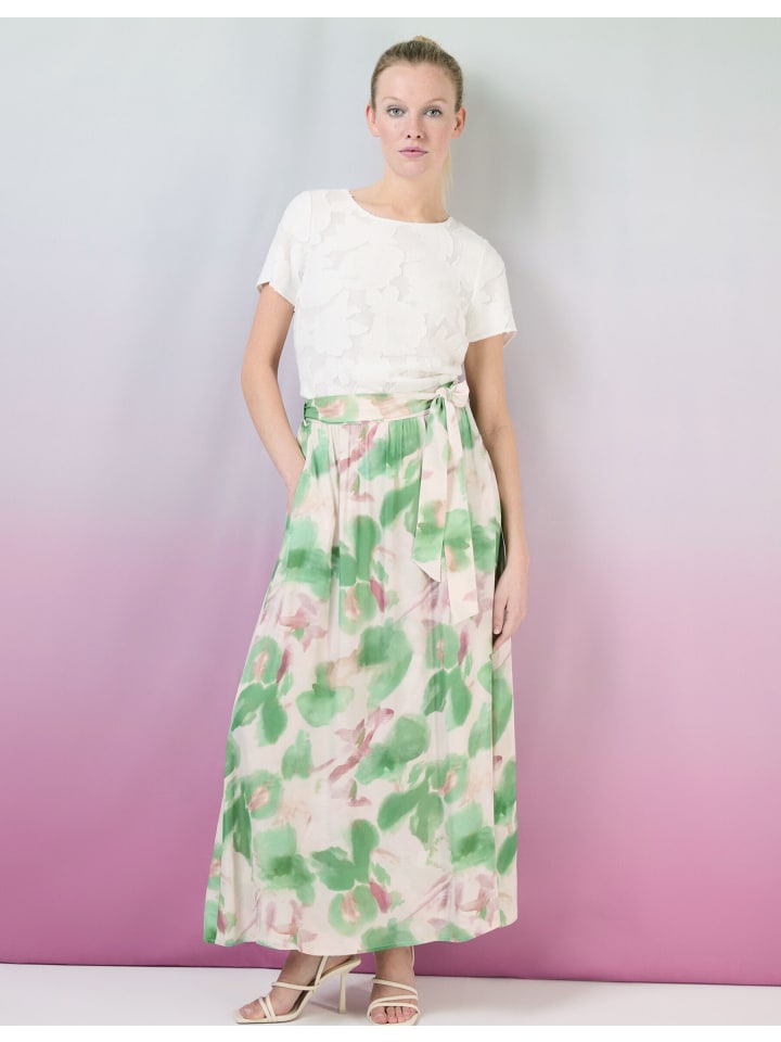 Юбка из струящегося атласа от MORE \ u0026 MORE с нежным цветочным принтом в акварельном стиле прекрасно смотрится с топом из пайеток и каблуками, но также очень повседневно смотрится с джинсовой курткой и кроссовками.
