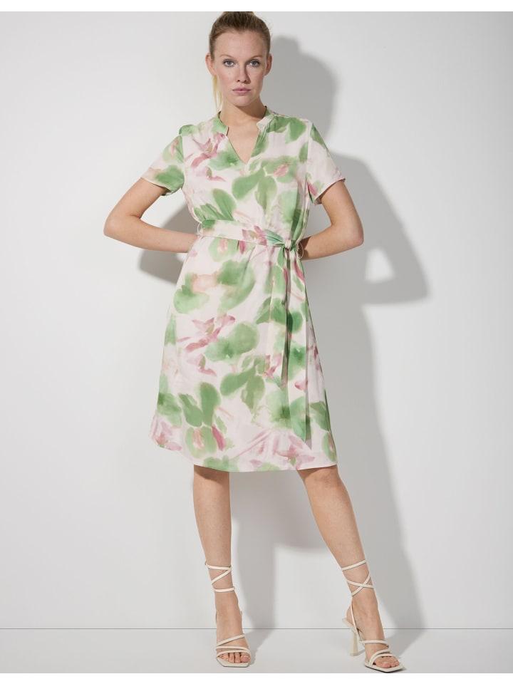 Это струящееся атласное платье от MORE \ MORE с нежным акварельным цветочным принтом и завязывающимся поясом на талии предлагает множество вариантов для создания образа. Его можно носить с повседневной джинсовой курткой и кроссовками, коротким кардиганом и балетками или элегантным блейзером и каблуками.