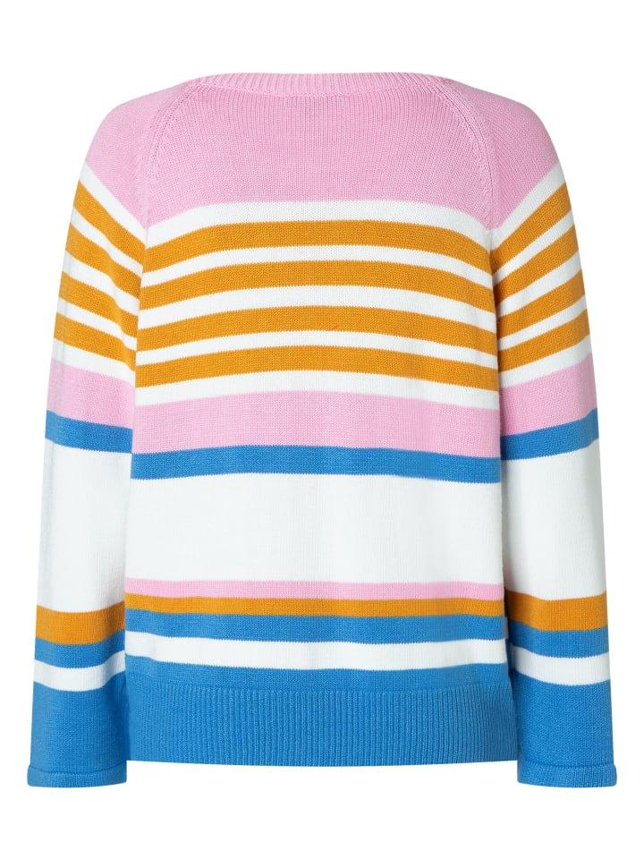 Этот повседневный полосатый свитер от MORE \ u0026 MORE впечатляет своими великолепными весенними цветами и его можно носить как с широкими брюками со складками, так и с повседневными джинсами.