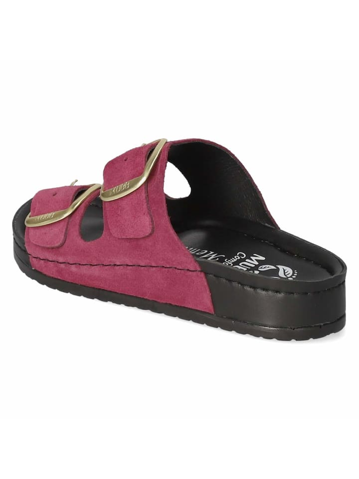 Уверенный образ начинается с основ: эти мюли Mubb сочетают в себе четкие линии и функциональные детали. Красный верх из прочной замши добавляет образу яркости, а золотые акценты добавляют элегантности. Застежка на две пряжки обеспечивает надежную посадку, а открытый носок подчеркивает воздушный силуэт. Формованная кожаная стелька и гибкая подошва, которая мягко повторяет форму стопы, обеспечивают комфортную посадку. Благодаря классическому крою эти мюли идеально подойдут для вашего летнего гардероба. Созданы для взрослых женщин, которые ценят комфорт и качество. Модный совет: носите с льняным костюмом натурального цвета или летним трикотажем цвета экрю - нежная красная помада завершит образ.