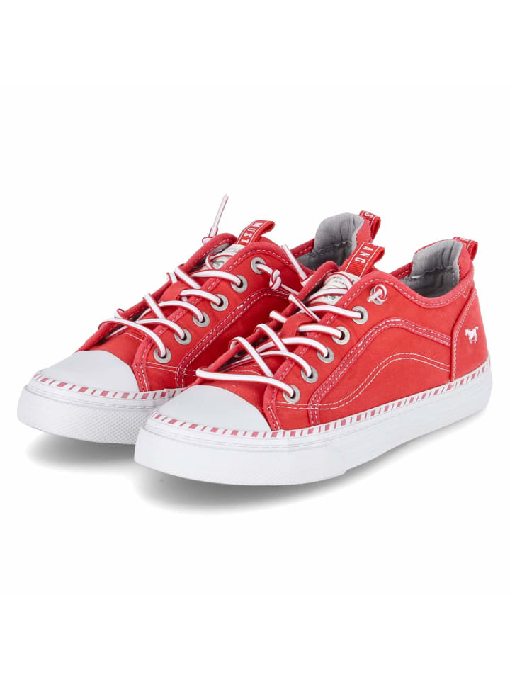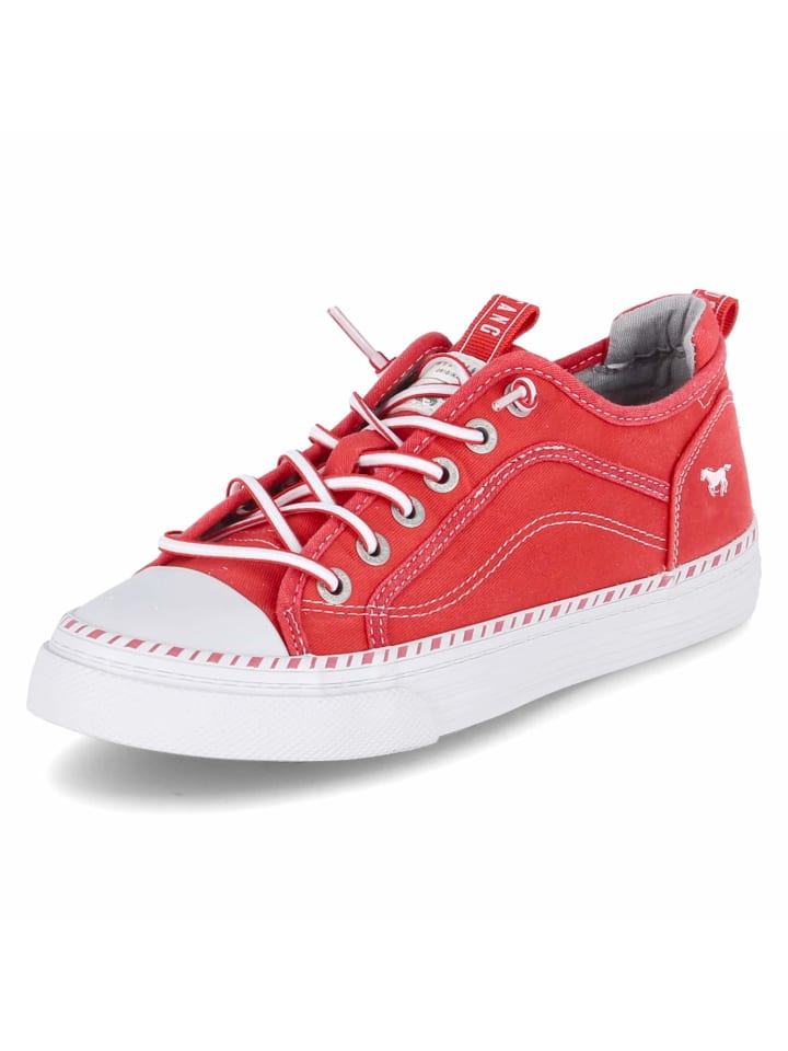 Эти красные текстильные кроссовки Mustang привносят свежий цвет и практичный комфорт в повседневную жизнь. Эластичный ремешок со шнуровкой придает модели спортивный вид, обеспечивая при этом гибкость при надевании. Усиленные носок и пятка, а также прочный синтетический подносок обеспечивают дополнительную защиту и устойчивость. Мягкая накладка на входе с двумя язычками обеспечивает легкость надевания и комфортную посадку. Изящная декоративная строчка подчеркивает динамичный дизайн. Мягкая стелька обеспечивает комфортную амортизацию, а гибкая противоскользящая подошва с бортиками обеспечивает надежное сцепление и естественное перекатывание. Удобные повседневные кроссовки со спортивным характером - идеально подходят для отдыха, города и путешествий.
