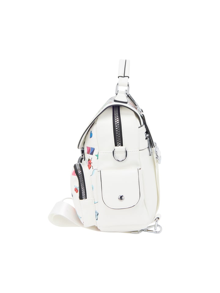 Подчеркните свой повседневный стиль с этим небольшим рюкзаком из нашей коллекции Fashion Look. Этот модный рюкзак из экокожи, украшенный игривым абстрактным узором, создан для ценителей моды, которые ценят функциональность и стиль. Верхняя ручка и регулируемые лямки рюкзака обеспечивают универсальность, а клапан с поворотным замком и застежкой-молнией обеспечивает надежный доступ к необходимым вещам. Внешние карманы на молнии добавляют удобства и современный вид, делая этот рюкзак идеальным спутником в ваших повседневных приключениях. Этот продукт входит в коллекцию Eyetheme.