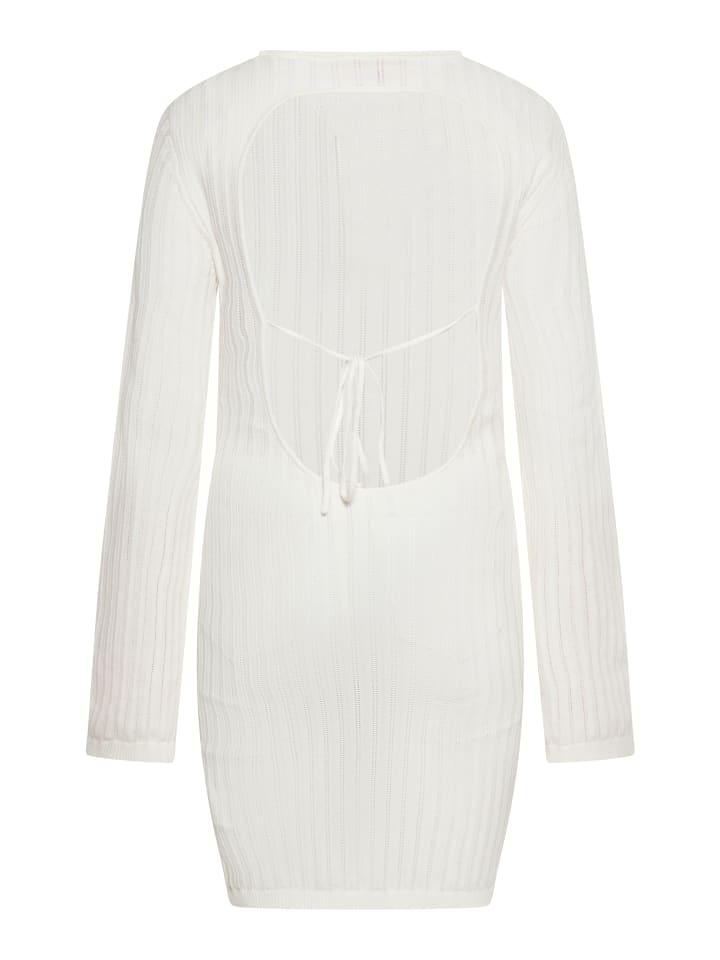 Обновите свой гардероб этим трикотажным платьем с уникальным фактурным узором. Платье с круглым вырезом и длинными рукавами имеет приталенный силуэт, подчеркивающий изгибы вашей фигуры. Вертикальные линии, создаваемые узором, добавляют глубины общему образу, а ребристая текстура создает легкий мерцающий эффект. Платье с открытой спиной и бантом на спине - отличный вариант для тех, кто ценит непринужденный стиль. Это платье, созданное совместно с ebeeza, сочетает в себе классический стиль и современный дизайн.