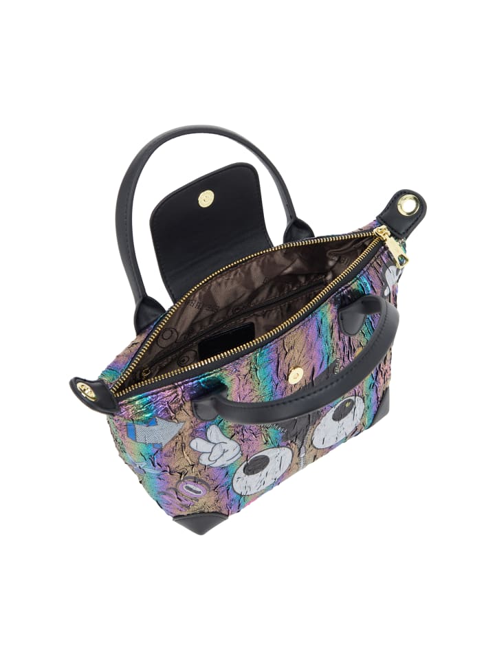 Заявите о себе с этой небольшой сумочкой-трапецией из нашей коллекции Fashion Look. Эта модная сумка из экокожи с завораживающей голографической отделкой и игривым абстрактным узором идеально подходит для модниц, которые ценят оригинальность и практичность. Верхние ручки и надежный клапан с застежкой на кнопку добавляют элегантности, а отделение на молнии гарантирует безопасность и порядок в хранении ваших самых необходимых вещей. Подчеркните свой повседневный стиль этим эффектным аксессуаром, который легко сочетает в себе стиль и функциональность. Этот продукт входит в коллекцию Eyetheme.