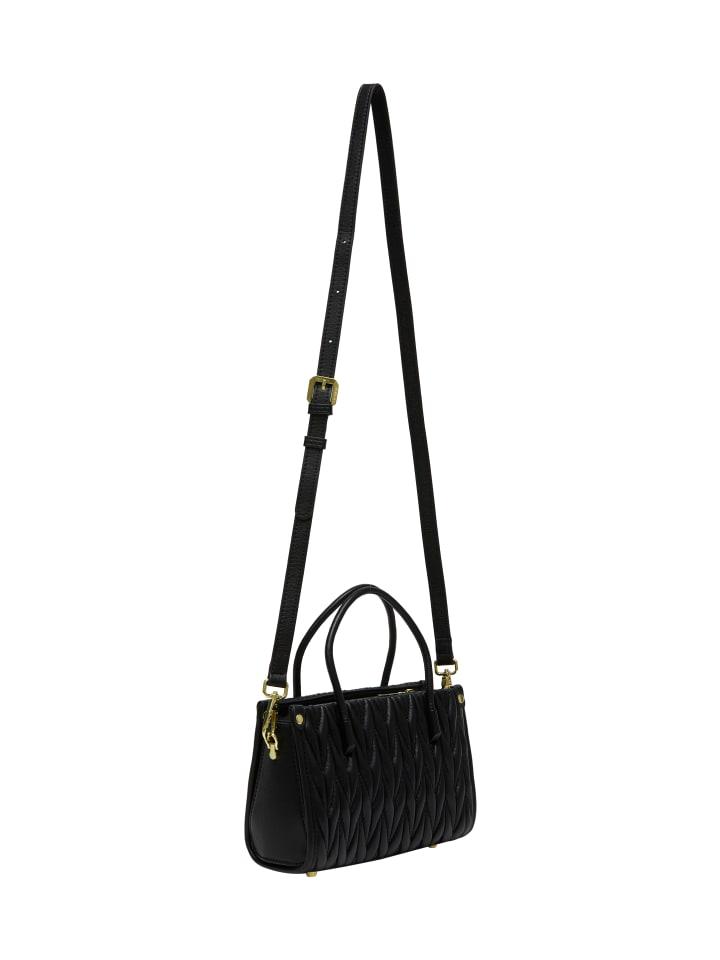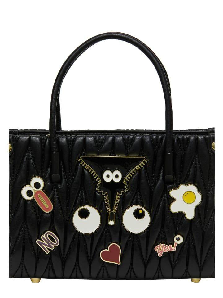 Откройте для себя стильную сумку со стеганой текстурой и абстрактным узором. Этот модный аксессуар отличается прочными ручками для удобной переноски, игривыми украшениями и надежной застежкой-молнией. Благодаря дополнительному ремню, узору в диагональные полосы и внутреннему карману на молнии, эта сумка идеально сочетает в себе функциональность и стиль для любого случая. Этот продукт входит в коллекцию Eyetheme.