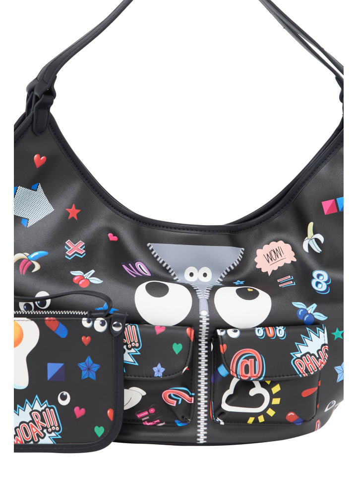 Добавьте элегантности в свой повседневный образ с этой средней сумкой в форме полумесяца из нашей коллекции Fashion Look. Эта модная сумка из экокожи с эффектным абстрактным узором идеально подходит для модниц, которые ценят стиль и практичность. Верхние ручки обеспечивают удобство переноски, а застежка-молния гарантирует сохранность всех необходимых вещей. Благодаря дополнительному мешочку для хранения и внешнему карману на молнии для легкого доступа, эта сумка сочетает в себе удобство и стильный современный дизайн. Этот продукт входит в коллекцию Eyetheme.