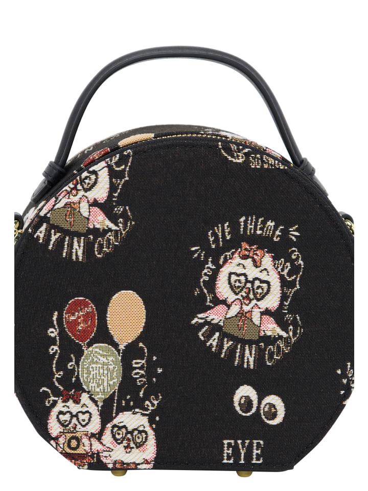 Откройте для себя стильную круглую сумку-сэтчел с привлекательным абстрактным узором и игривой графикой. Благодаря прочной ручке и дополнительному ремню эта сумка универсальна и подойдет для любого модного случая. Внутренний карман на молнии сохранит все необходимые вещи, а застежка-молния добавит функциональности этому стильному аксессуару. Этот продукт входит в коллекцию Eyetheme.