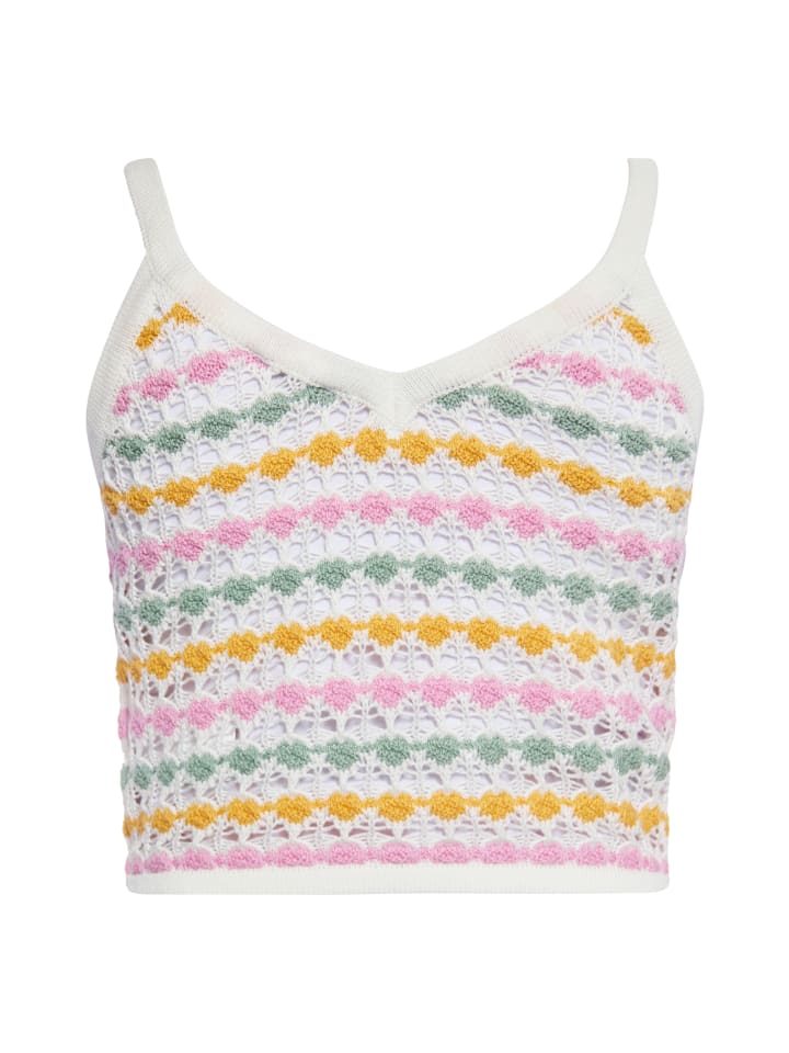 Добавьте нотку непринужденности в свой повседневный гардероб с этим шикарным трикотажным топом без рукавов. Этот топ с модным укороченным кроем и V-образным вырезом идеально подходит для облегающего кроя. Ребристая текстура добавляет глубины повторяющемуся геометрическому узору, а сплошная ребристая отделка по подолу, вырезу и проймам создает стильный контраст. Этот топ идеально подходит для многослойного ношения или сам по себе, он воплощает непринужденный стиль и современную изысканность. Разработанный совместно с ebeeza, этот топ сочетает в себе классический стиль и современный дизайн.