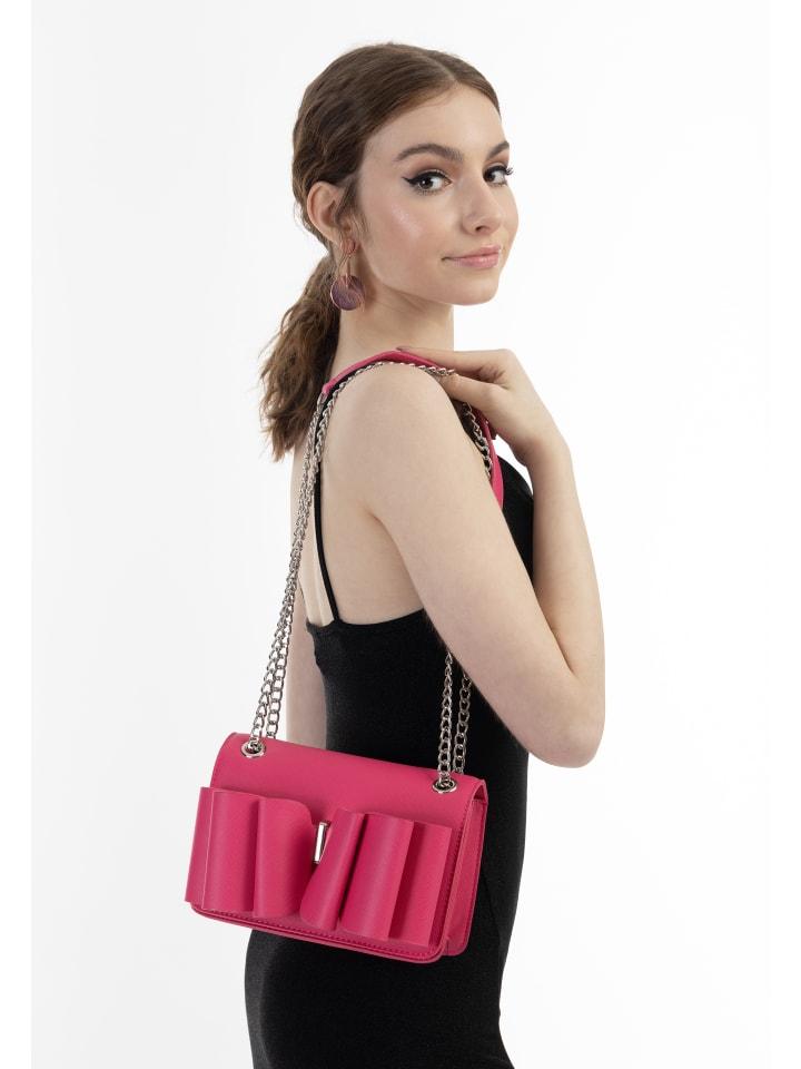 Подчеркните свой стиль с этой элегантной структурированной сумкой через плечо. Эта небольшая прямоугольная сумка с застежкой в виде банта на клапане излучает элегантность. Ремешок-цепочка добавляет нотку изысканности, а кнопка и внутренний карман на молнии обеспечивают практичность. Этот аксессуар из экокожи идеально подходит для вечеринок и станет украшением любого образа.