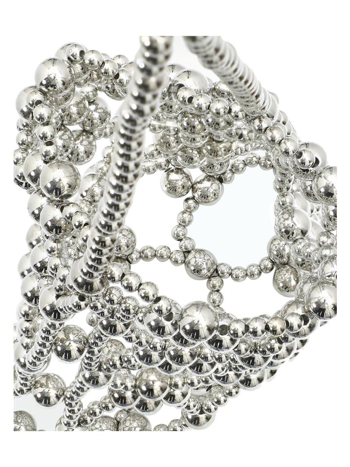 Подчеркните свой стиль с этой элегантной сумкой через плечо, отличающейся уникальной трапециевидной формой и открытым кроем. Сетчатый узор украшен блестящими сферическими бусинами и жемчугом, а ремешок с бусинами подчеркивает ее элегантный вид. Эта небольшая, но стильная вещь идеально подходит для вечерних мероприятий и обязательно привлечет внимание, где бы вы ни находились.
