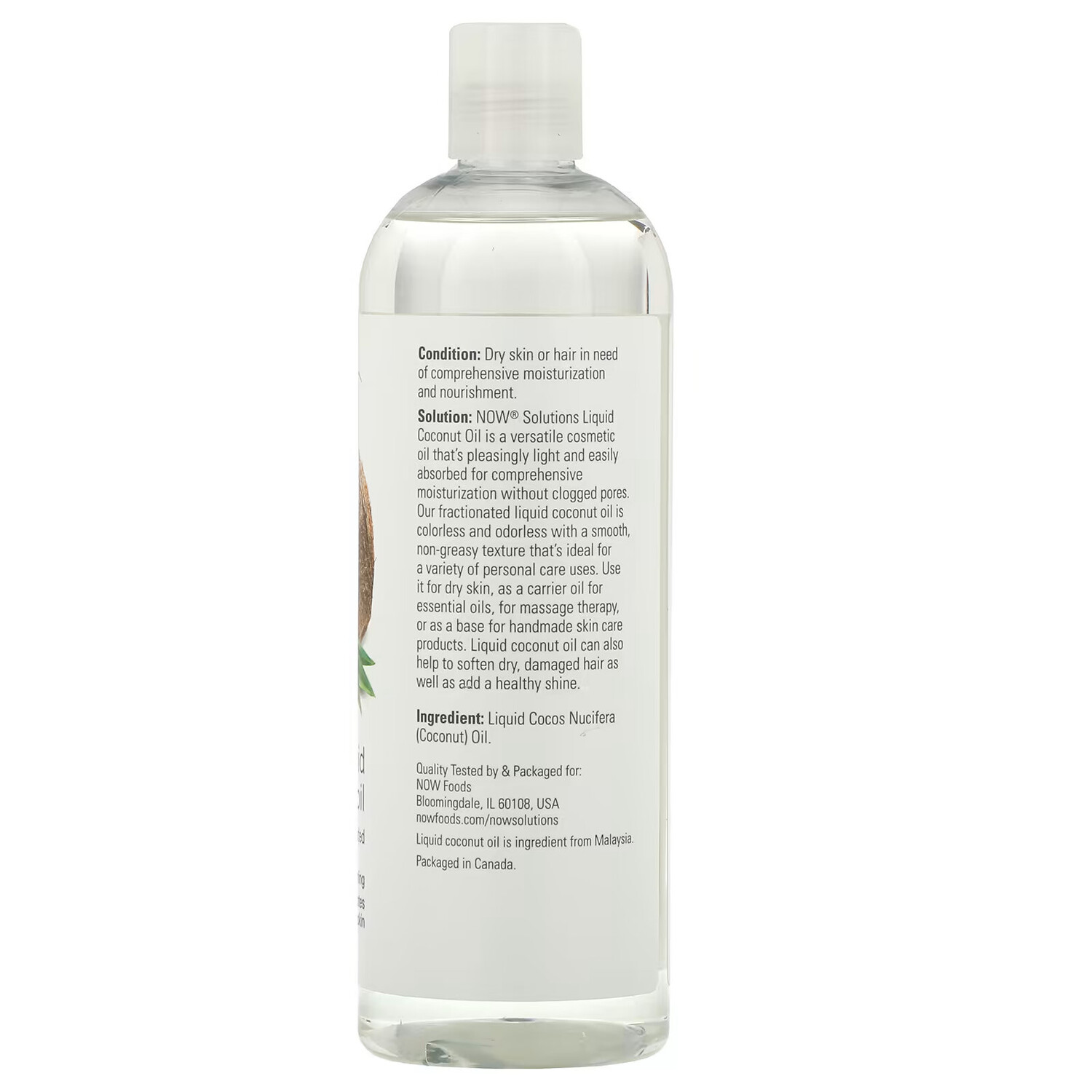 NOW Solutions Liquid Coconut Oil — универсальное косметическое масло, приятно легкое и легко впитывающееся, обеспечивающее всестороннее увлажнение без закупорки пор.