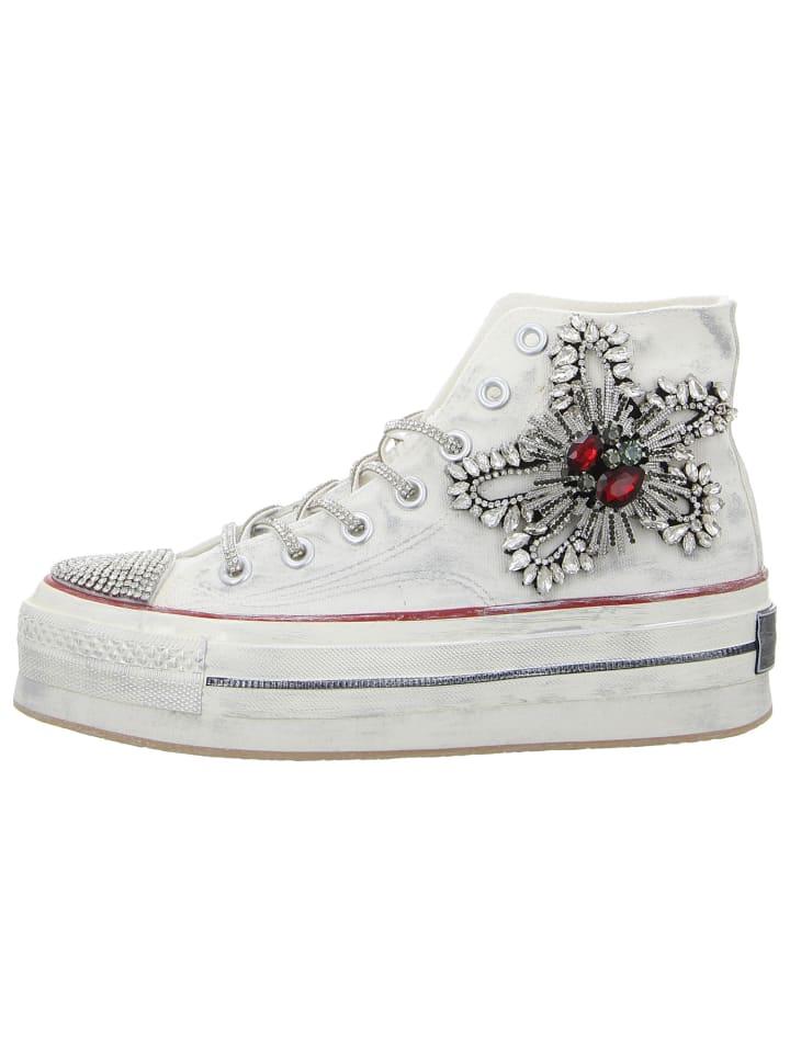 Эти игривые высокие кроссовки ярко-белого цвета идеально воплощают элегантность, комфорт и непринужденную простоту, характерные для NAN-KU. Благодаря сверкающим блестящим элементам и динамичному силуэту эти кроссовки станут ярким модным акцентом. Высокая платформа с модным эффектом потертости также обеспечивает максимальный комфорт при ходьбе. Не упустите возможность приобрести эти впечатляющие и модные кроссовки от NAN-KU! Будьте готовы ощутить стиль и комфорт в уникальной элегантной манере.