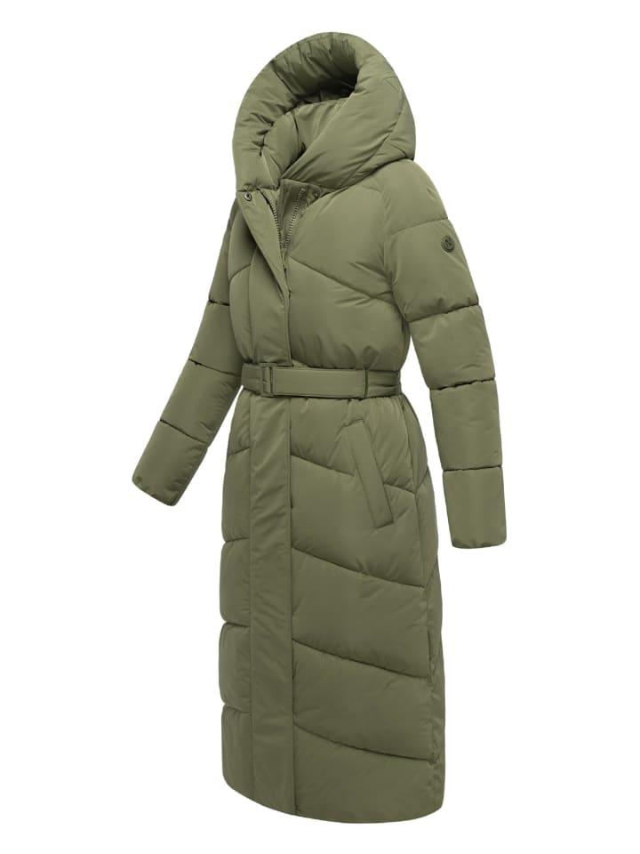 Длинное женское стеганое пальто с капюшоном на подкладке