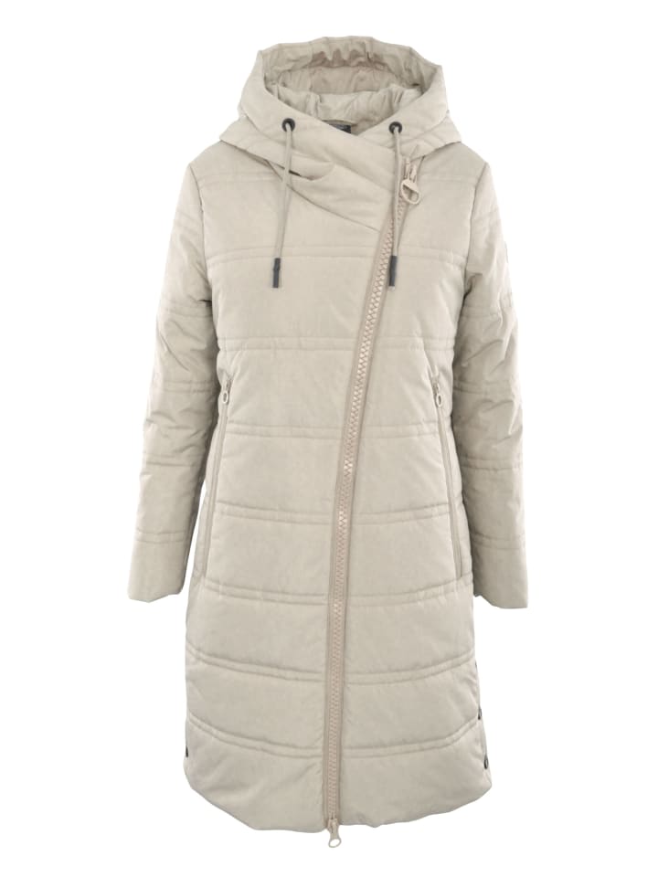Это стильное стеганое пальто сочетает в себе современный дизайн и высокую функциональность и станет незаменимым спутником в холодное время года. Высококачественная стежка обеспечивает оптимальную теплоизоляцию, придавая пальто элегантный, структурированный вид. Изюминкой является асимметричная молния, которая не только добавляет модный штрих, но и обеспечивает дополнительное тепло и защиту. Высокий воротник и практичный капюшон с регулируемыми завязками надежно защищают от ветра и непогоды. Два боковых кармана на молнии обеспечивают достаточно места для мелких вещей и подчеркивают спортивно-элегантный вид пальто. Благодаря нейтральной цветовой гамме пальто можно комбинировать различными способами, добавляя изюминку любому зимнему образу.