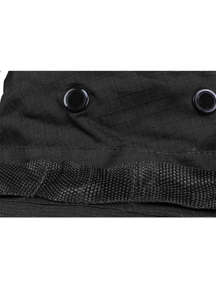 Четыре вентиляционных отверстия с москитными сетками, предотвращающими попадание мелких насекомых, а также дышащая, приятная для кожи хлопковая ткань обеспечивают приятную циркуляцию воздуха и, таким образом, повышают комфорт. Даже ветер в открытом внедорожнике не сдует панаму с головы, если плотно затянуть шнурок-фиксатор подбородочного ремня. Ремешок вокруг панамы имеет 12 петель MOLLE и изначально использовался для крепления боеприпасов. Сегодня в нее в основном вставляют небольшие веточки, прутья или пучки травы для маскировки.