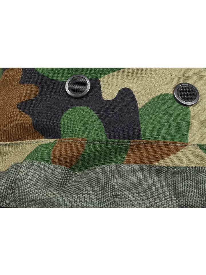 Четыре вентиляционных отверстия с москитными сетками, предотвращающими попадание мелких насекомых, а также дышащая, приятная для кожи хлопковая ткань обеспечивают приятную циркуляцию воздуха и, таким образом, повышают комфорт. Даже ветер в открытом внедорожнике не сдует панаму с головы, если плотно затянуть шнурок-фиксатор подбородочного ремня. Ремешок вокруг панамы имеет 12 петель MOLLE и изначально использовался для крепления боеприпасов. Сегодня в нее в основном вставляют небольшие веточки, прутья или пучки травы для маскировки.