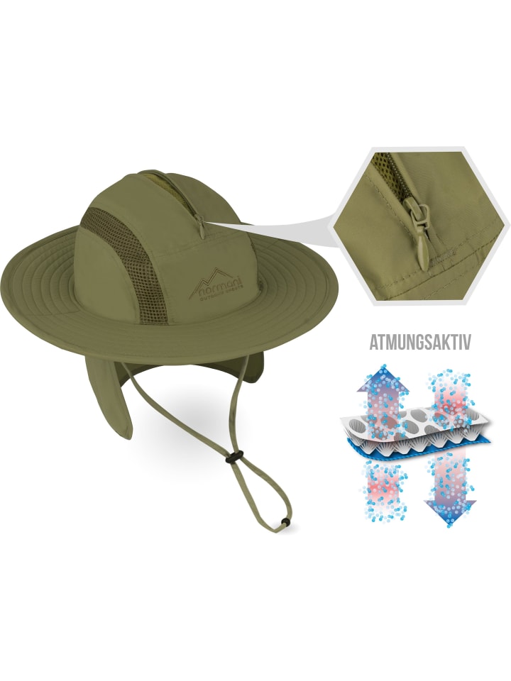 В большинстве регионов Новой Зеландии солнце светит более 2000 часов в год, причем в летние месяцы уровень ультрафиолетового излучения увеличивается. Солнцезащитная шляпа New Zealand с простым дизайном, жесткими полями, защитой шеи и воздухопроницаемой сетчатой тканью абсолютно надежна даже в длительных поездках. Она также станет отличным спутником в путешествиях в жарких регионах. Благодаря практичному ремешку для подбородка и скрытому быстрорегулируемому шнурку вы можете отрегулировать шляпу по размеру головы. Удобная посадка избавит вас от необходимости бегать за шляпой даже в ветреные пляжные дни. Благодаря скрытому карману с кнопкой на козырьке практичную защиту шеи можно легко убрать, когда она не используется. Высокофункциональная ткань быстро сохнет благодаря впитывающему материалу.