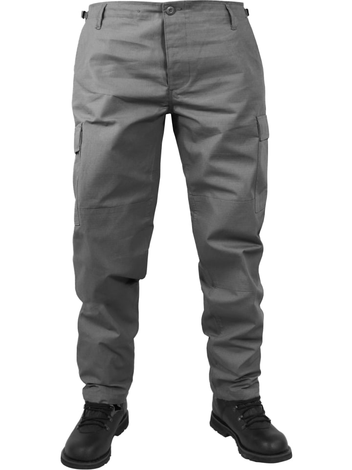 Ткань рипстоп очень тонкая и узнаваема по особому зигзагообразному рисунку. Через каждые несколько миллиметров в ткани проходит более прочная нить основы или утка. В случае разрыва материал не распространяется бесконтрольно по всей поверхности, а останавливается на более прочной нити рипстопа. Таким образом, материал восстанавливает свою исключительную прочность и устойчивость к разрывам. Материал также обладает ветро- и водоотталкивающими свойствами. Брюки имеют усиления в области ягодиц и коленей, а ширинка застегивается на потайную планку с пуговицами. Регулируемый пояс и манжеты на штанинах со шнурками позволяют регулировать размер и оптимальную посадку.