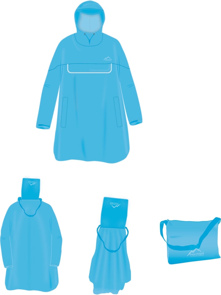 Дополнительные функции были добавлены для ежедневных поездок на велосипеде. Во-первых, дождевик-пончо оснащен светоотражающими полосами 3M Scotchlite с обеих сторон. Это повышает безопасность на дороге и облегчает раннее обнаружение в сумерках. Кроме того, на нижней стороне предусмотрены практичные петли для запястий, которые предотвращают раздражающее развевание на ветру. Под пончо можно надеть даже небольшой рюкзак. Эластичный пояс не позволит ему задраться при сильном ветре.