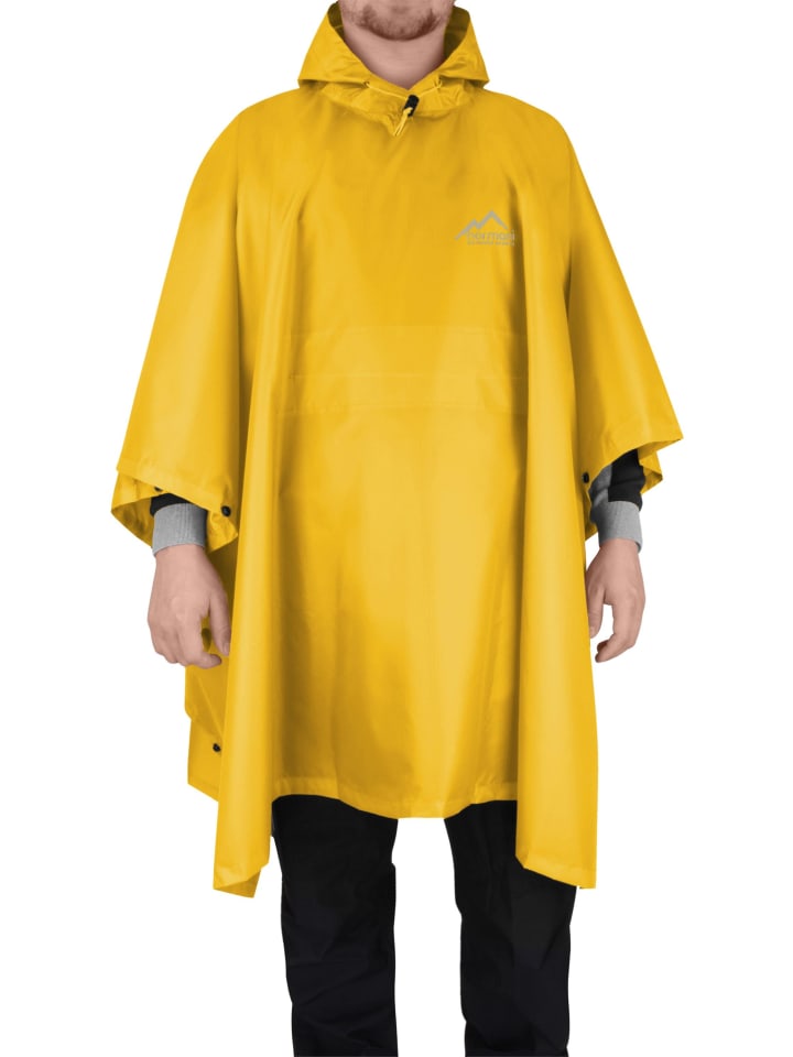 Водонепроницаемое и ветронепроницаемое дождевик-пончо Derry с герметичными швами и водонепроницаемым верхним слоем из нейлона рипстоп плотностью 230D. Благодаря гидростатическому напору 12 000 мм, он полностью водонепроницаем, независимо от того, сидите ли вы в кресле у озера под проливным дождем или катаетесь на велосипеде. Для сравнения, ткань официально считается водонепроницаемой при водонепроницаемости 1500 мм. С этим дождевик-пончо вы в полной безопасности. Технология плетения рипстоп придает материалу невероятную прочность на разрыв и увеличивает срок службы изделия. Пончо обеспечивает постоянную защиту от непогоды, имеет длину до колена и не стесняет движений. По бокам расположено пять кнопок, которые можно расстегнуть для лучшей циркуляции воздуха в зависимости от погодных условий или застегнуть во время сильного, затяжного дождя. Кулиска на капюшоне и талии регулируется по длине. Это означает, что вы можете упаковать этот прочный дождевик-пончо, оснащенный четырьмя люверсами, как надежную аварийную палатку или брезент и использовать его в проливной, постоянный дождь. Размер дождевика-пончо составляет 140 x 208 см, что более чем достаточно для этой цели, позволяя вам с комфортом разместить спальный коврик и рюкзак под аварийной палаткой. Благодаря небольшому размеру упаковки 20 x 6 x 6 см в легкой сумке для переноски и малому весу всего 320 г, этот дождевик-пончо легко помещается в ваш багаж во время езды на велосипеде или похода.