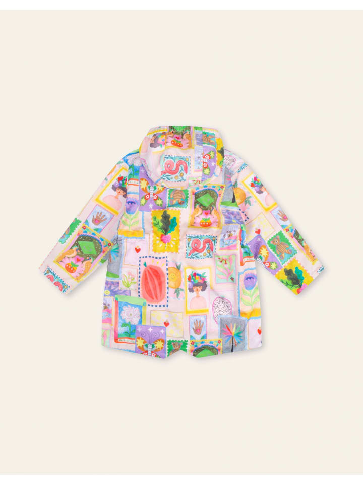 Открытки с прекрасными изображениями - вот дизайн наших открыток Tesni Cards. Расписанные вручную и вдохновленные Фридой Кало, далекими путешествиями, особенными фруктами и местными растениями, эти детали гармонично сочетаются в этой куртке. Подкладка приятная на ощупь, а талия регулируется внутри. - Сделано в Китае.