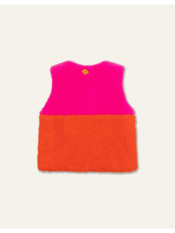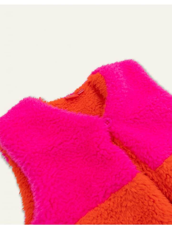 Этот жилет вызовет улыбку на лице каждого и вызовет желание обнять вас. Он сделан из мягкого искусственного меха с цветовыми блоками розового и ярко-красного цветов. Жилет застегивается на простую кнопку. - 100% полиэстер - Стандартный крой