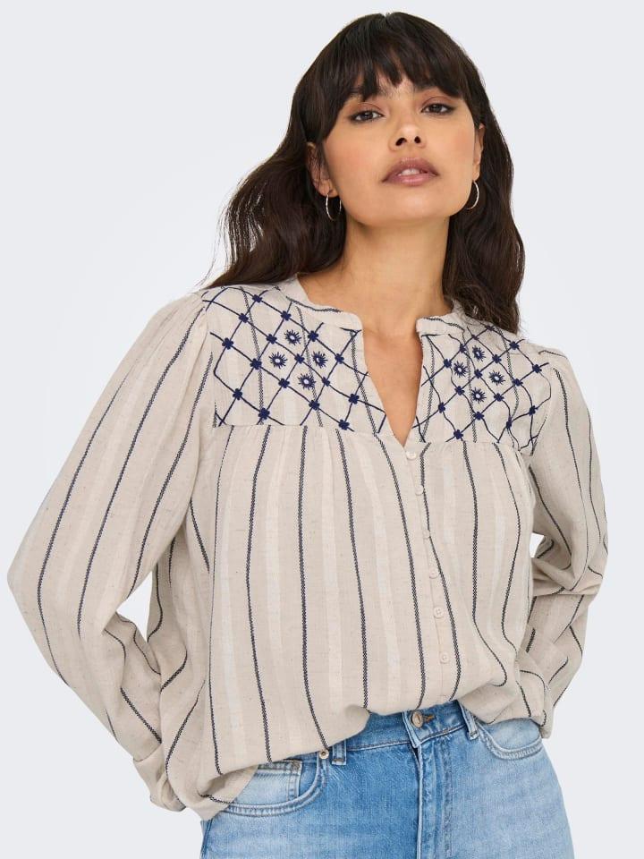 Добавьте в свой гардероб мягкие цвета и изящные детали с помощью женственной блузки, которую можно легко сочетать с классическими джинсами или элегантной юбкой.