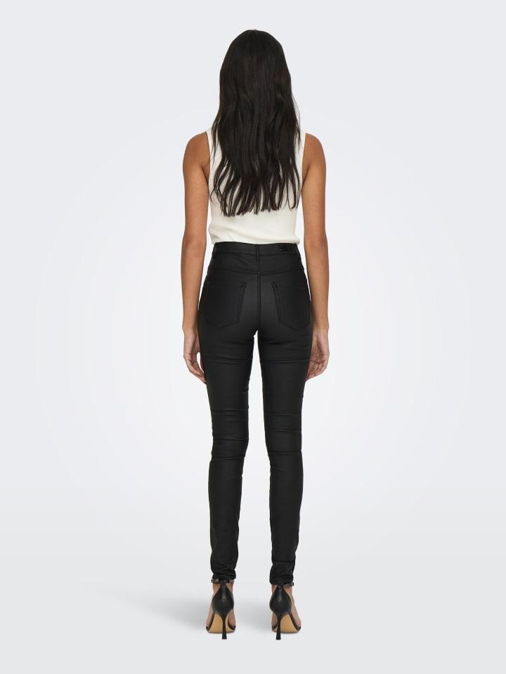 Джинсы Royal Life черного цвета, однотонные, с покрытием, облегающего кроя, с высокой талией, имитацией кожи, застежкой спереди, шлевками для ремня, 2 открытых кармана сзади, эластичный материал. Длина внутреннего шва: 84 см для размера M/34. На модели размер S/34. Внешний материал: 77% вискоза, 20% другие материалы, 3% эластан.