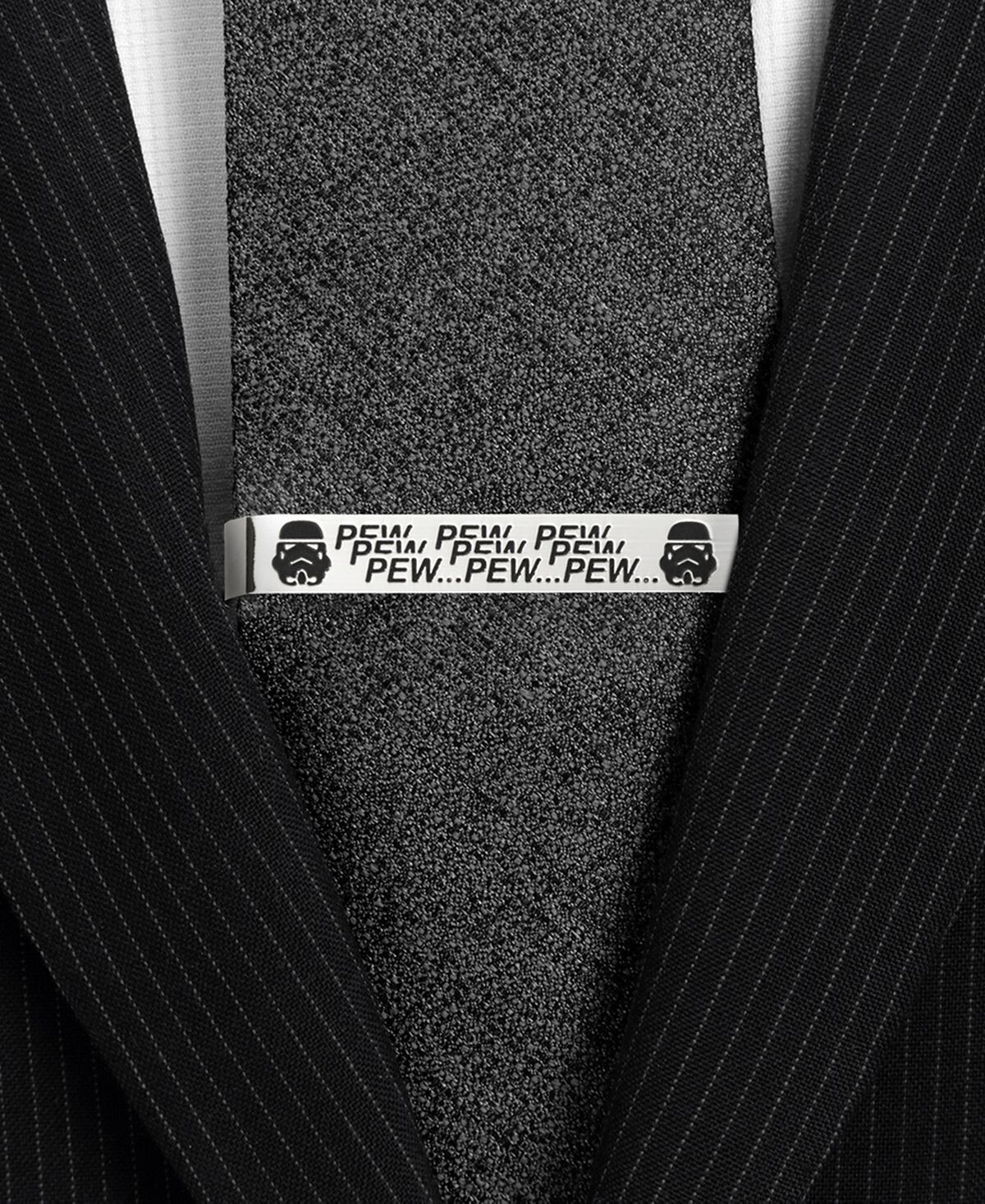 Вам не обязательно издавать звук «пиу-пиу-пиу» каждый раз, когда вы носите этот серебристый и черный галстук, но на самом деле вы упускаете возможность, если не сделаете этого.
