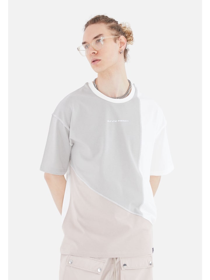 Современный свободный крой со спущенными плечами. Эта повседневная футболка немного шире и больше. Доступна в черном, сером/белом и бежевом цветах.