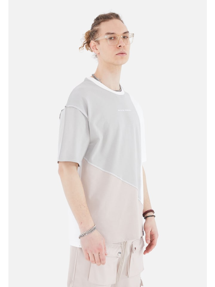 Современный свободный крой со спущенными плечами. Эта повседневная футболка немного шире и больше. Доступно в черном, сером/белом, бежевом цветах