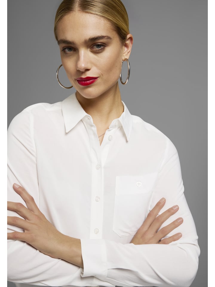 Длинная женская блузка от бренда OTTO Products, которую легко комбинировать. Облегающий крой, закрывающий бедра и подчеркивающий фигуру. Длинные рукава с разрезами. Застежка на пуговицы. Мягкая и легкая ткань делает верх особенно комфортным.