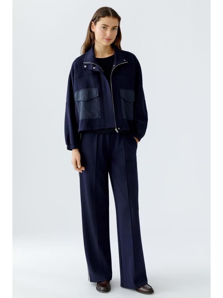 Повседневный блузон из скуба современного кроя с накладными карманами в тон.