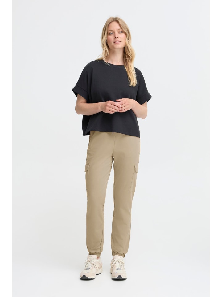 Эти женские брюки-карго сочетают в себе функциональный стиль и современный комфорт - идеально подходят для повседневной носки, отдыха и активного отдыха. Высокое качество и мастерство изготовления обеспечивают удобную посадку и приятные ощущения. Классические характеристики, такие как боковые карманы с клапанами, прочные материалы и прямой или зауженный крой, делают эти брюки универсальным предметом одежды. В сочетании с футболкой, толстовкой с капюшоном или блузкой брюки-карго можно стилизовать индивидуально, и они дополнят как спортивный, так и повседневно-элегантный образ. Современная базовая вещь для женщин, ценящих практичную моду и стильную универсальность.