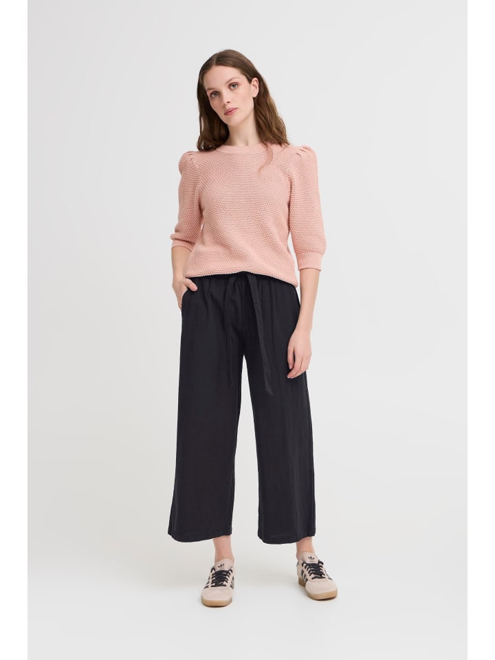 Эти брюки-кюлоты добавят упругости и легкости вашему гардеробу. Широкие штанины обеспечивают свободу движений и струящийся вид. В сочетании с блузкой, топом или тонким трикотажем они создадут свежий городской образ. Модное заявление для женщин, которые хотят сочетать моду и комфорт.