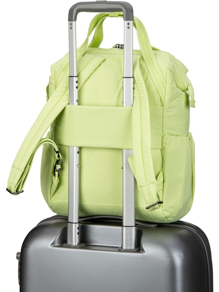 Надежная защита от карманных краж с Pacsafe: модный женский рюкзак для ноутбука, подходящий для формата А4 и с отделением для ноутбуков размером до 31 x 24 x 2,5 см.