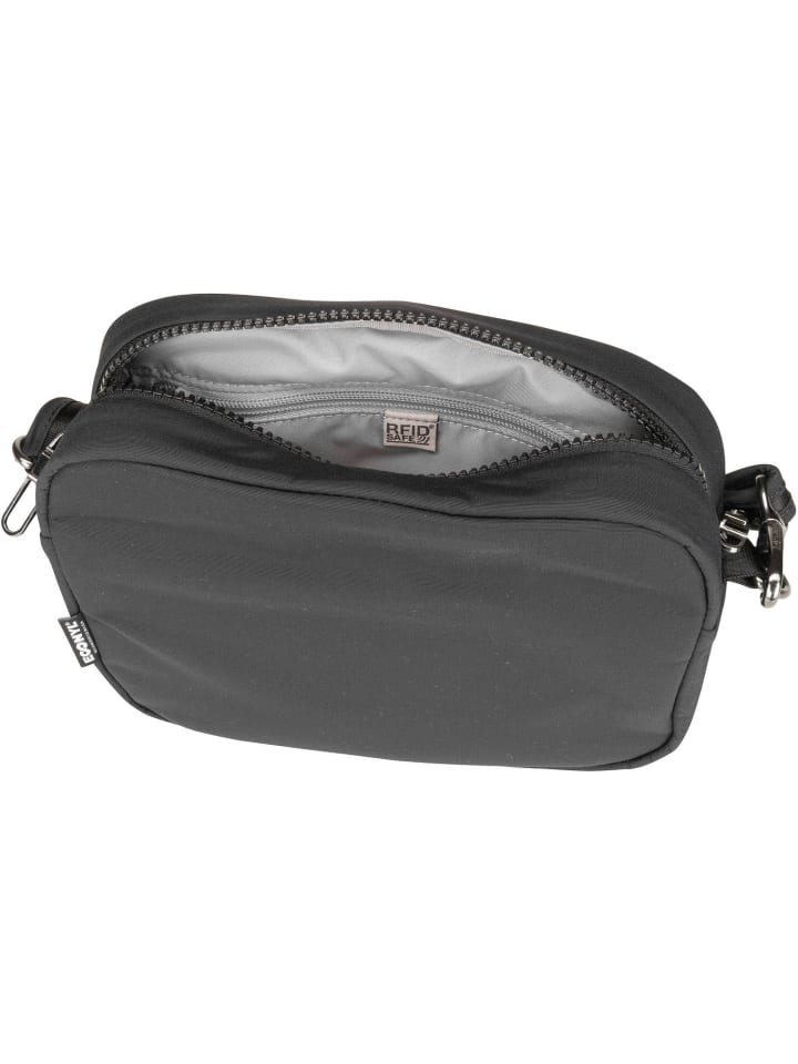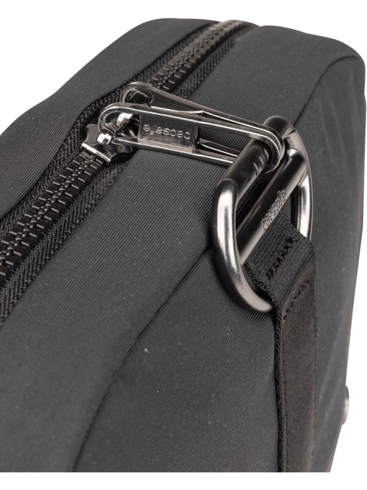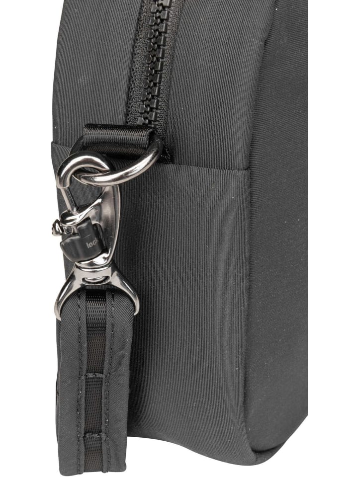 Небольшая, спортивно-элегантная сумка через плечо от Pacsafe из переработанного водоотталкивающего нейлона. Оснащена защитой RFID и запирающимися молниями. Идеально подходит для путешествий и повседневного использования, сочетая в себе стиль, безопасность и экологичность.